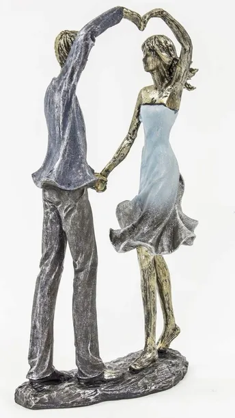 Wyborna dekoracja do wnętrz urządzonych w stylu nowoczesnym i mieszanym. Figurka przedstawiającą kobietę i mężczyznę w romantycznej pozie. Świetnie sprawdzi się jako pomysł na symboliczny prezent dla pary na wiele różnych okazji: ślub, rocznica ślubu, parapetówka u młodego małżeństwa.