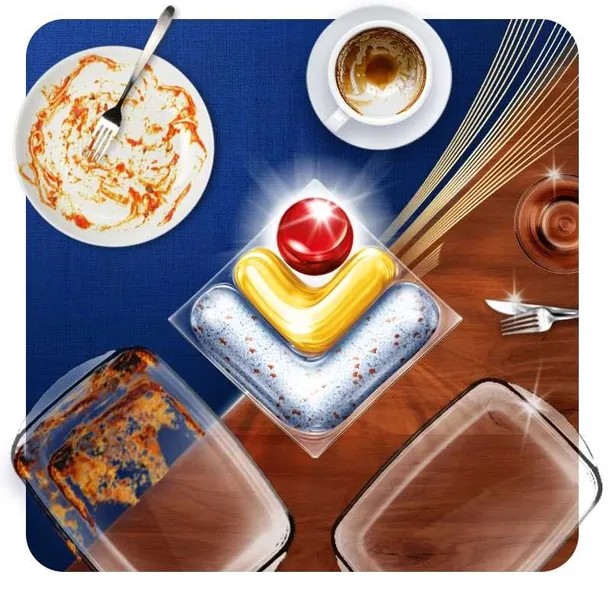 ✅Zaawansowana formuła skutecznie usuwa nawet przypalone resztki jedzenia - bez wstępnego opłukiwania, zapewniając aż 4 różne działania w cyklu zmywania.