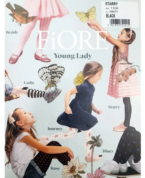 Fantazyjne rajstopy dziewczęce, ozdobione wzorem jasnych gwiazdek na czarnym tle. Pół-kryjące, błyszczące, wykonane z wysokiej jakości przędz, które zostały wyselekcjonowane ze względu na elastyczność, idealne dopasowanie i trwałość. Rajstopy z zaznaczoną częścią majteczkową, niewidocznie wzmocnione palce. Zapewniają idealną równowagę między wygodą a stylem. Grubość: 40 DEN. Skład: 93% poliamid, 3% elastan, 2% polipropylen 2% przędza metalizowana.