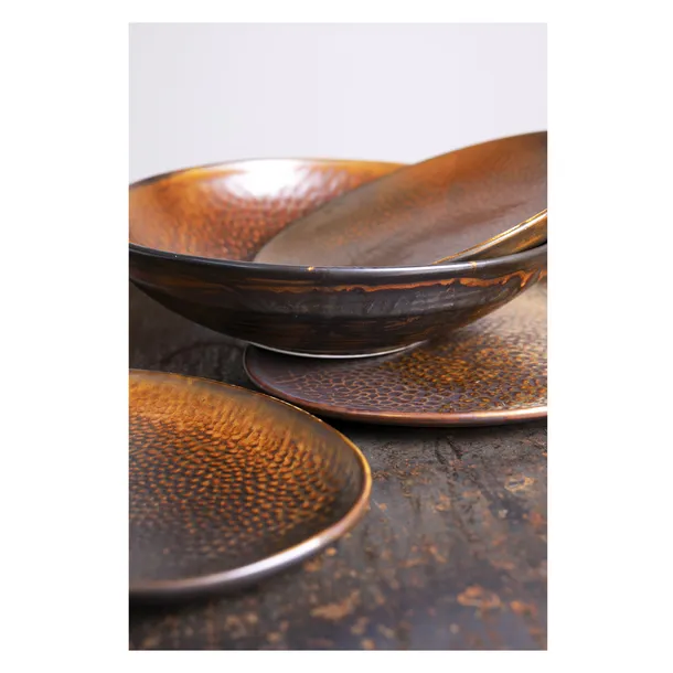Kolekcja FIRE to aż dziesięć różnych propozycji naczyń, które stworzą wyjątkowe wrażenie na Twoim stole. Połączenie miedzianego-szlachetnego koloru oraz ciekawej, młotkowanej struktury porcelany to obecnie bardzo mocny trend w wyposażeniu restauracji czy jadalni. Kolekcja inspirowana starzeniem się brązu, nierównomierna faktura oraz subtelne refleksy uzyskane dzięki nowatorskiej metodzie wypalania porcelany, to idealne tło do wyeksponowania serwowania dań.