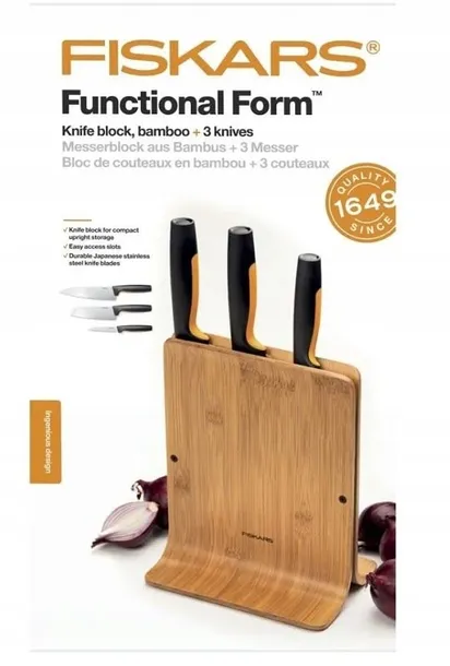 FISKARS Zestaw 3 noży w bambusowym bloku Functiona