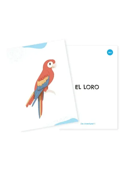 Fiszki obejmują podstawowe słownictwo hiszpańskie dla dzieci i młodzieży rozpoczynających naukę hiszpańskiego jako języka obcego. Zestaw składa się z 214 kart z obrazkami przedstawiającymi podstawowe słownictwo języka hiszpańskiego i stanowi materiał uzupełniający podręcznik „De Aventura 1”. Każda karta formatu A5 przedstawia ilustrację po jednej stronie i odpowiadające jej słowo po drugiej. Kategorie tematyczne: