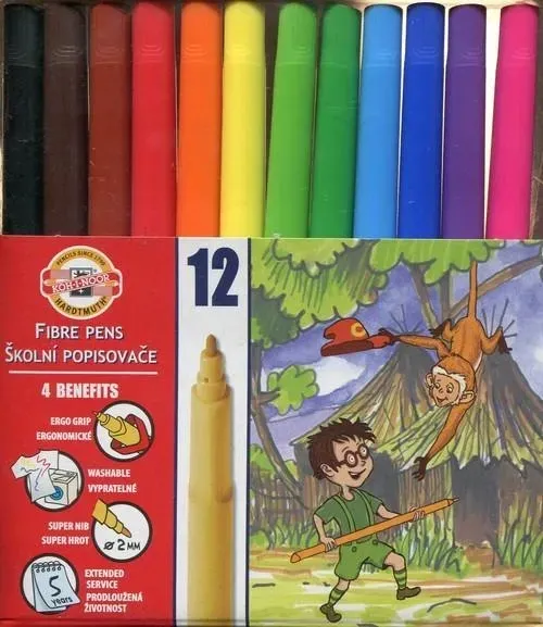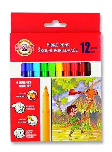 Szkolne flamastry zmywalne z ergonomicznym trójbocznym uchwytem. W przypadku pobrudzenia ubrania lub rąk (czy też innych przedmiotów) łatwe w usunięciu za pomocą wody z mydłem (pranie w temperaturze 40 st. C). Bezpieczne dla użytkownika, produkowane zgodnie z europejskimi normami bezpieczeństwa. Mają gwarantowaną przydatność do użycia aż do 4 lat. Komplet 12 kolorów w kartoniku.