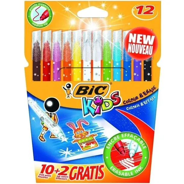 FLAMASTRY BIC COLOUR&ERASE 12 KOLORÓW