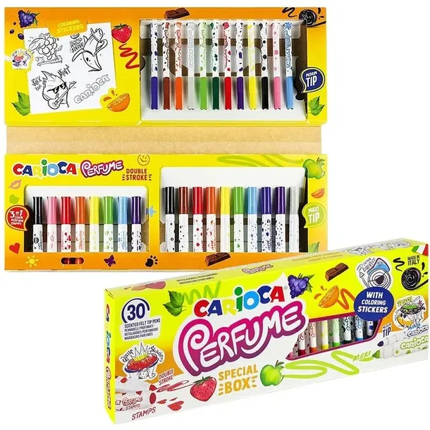 * zestaw zawiera: 12 pisaków perfume, 10 pisaków perfume Maxi, 8 pisaków pefume stamps oraz naklejki