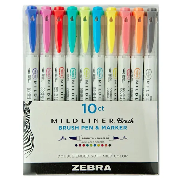 Miękki kolor Zebra Mildliner jest idealny, kiedy chcesz coś podkreślić bez "przytłaczania" wszystkiego na stronie. Teraz również dzięki końcówce brush pen, możesz wykaligrafować ozdobny tytuł lub pokolorować rysunek. Zastosowań Mildlinerów są na prawdę setki. Zebra Mildliner Brush posiada tusz na bazie wody, nietoksyczny.