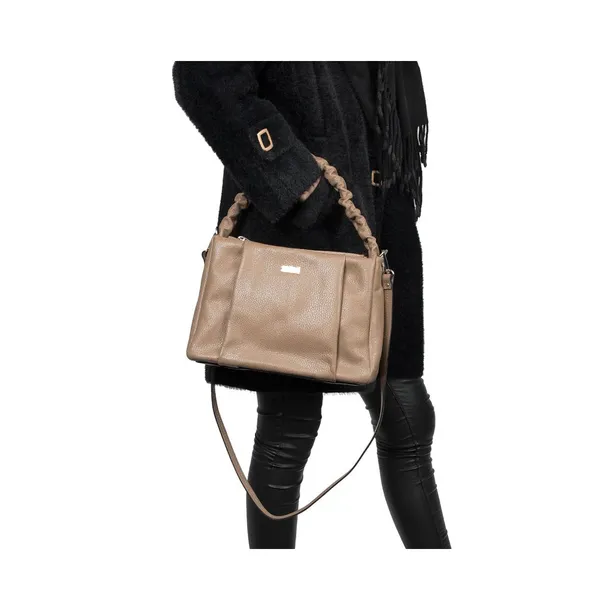 Mała torebka klasyczna marki Venezia wykonana z wysokiej jakości skóry naturalnej w pasującym do wszystkiego kolorze beżowym. Wnętrze torebki obszyte jest czarną tkaniną z logowaniem marki Venezia. Torba składa się z jednej komory. W środku znajduje się jedna kieszonka zapinana na zamek oraz dwie otwarte np na telefon komórkowy. Metalowe okucia są w kolorze srebrnym. Torebka posiada wygodny uchwyt o długości 40 cm i wysokości ok 16 cm, i odpinany pasek z możliwością regulacji o max. długości 98 cm. Wymiary torebki: wysokość 19 cm, szerokość 27 cm, głębokość 8 cm. Mimo niewielkiego rozmiaru z pewnością pomieści wszystkie niezbędne kobiece drobiazgi. Nie zwlekaj, zamów już dziś i baw się kolorami dopasowując ten model do różnych stylizacji.