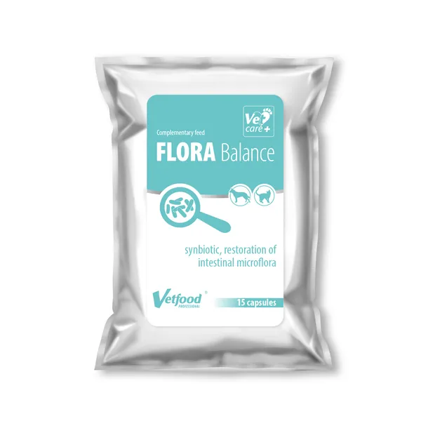 FLORA Balance zawiera korzystne kultury bakterii w wysokim stężeniu i prebiotyk (inulinę). Składniki te wspierają prawidłową pracę przewodu pokarmowego i wpływają na odbudowę mikroflory jelitowej u zwierząt.