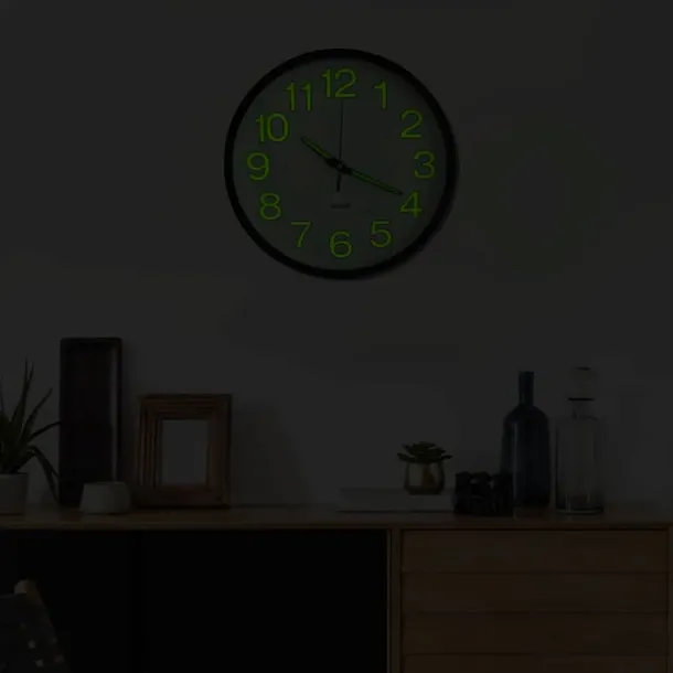 Fluorescencyjny zegar ścienny, czarny, 30 cm