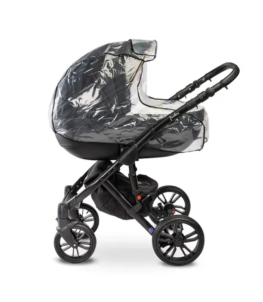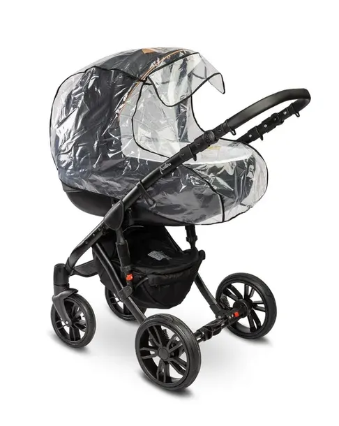 Folia przeciwdeszczowa zabezpiecza wózek i dziecko przed niepogodą. Wykonana z grubej folii całkowicie bezpiecznej dla dziecka, odpornej na wysokie i niskie temperatury. Posiada wycięcie umożliwiające kontakt z dzieckiem. Folia została przetestowana przez PZH pod kątem jakości materiałów i wykonania. Pokrowiec jest dostępny w trzech wersjach, tak aby idealnie pasował do typu wózka.