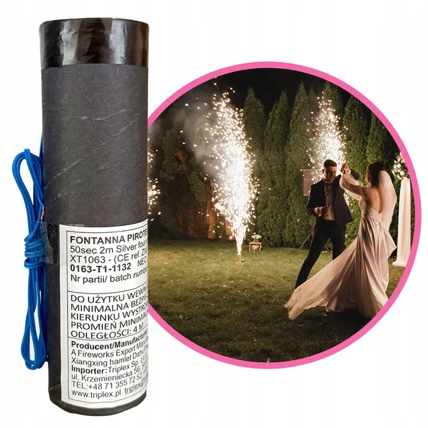 Szukasz wyjątkowego efektu na swoją imprezę? Fontanna 2m/50s XT1063 to idealne rozwiązanie, które doda blasku i niezwykłości każdemu wydarzeniu. Ta srebrna fontanna zimnych iskier, przeznaczona do użytku na zewnątrz, oferuje imponujący zasięg do 2 metrów oraz ciągły efekt trwający aż 50 sekund. Dzięki łatwemu podłączeniu do systemu zdalnego sterowania, odpalanie fontanny jest szybkie i wygodne, co sprawia, że staje się ona idealnym dodatkiem do różnorodnych wydarzeń, takich jak wesela, torty urodzinowe czy jubileusze.