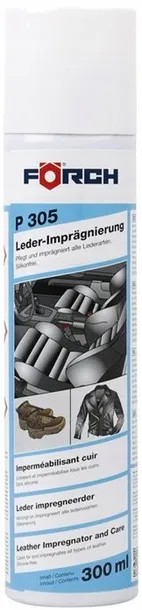 FORCH P305 to wysokiej jakości preparat w sprayu przeznaczony do impregnacji elementów skórzanych. Dzięki swojej formule poprawia wygląd skóry, nadaje jej giętkość i elastyczność oraz skutecznie chroni przed wilgocią i zabrudzeniami.