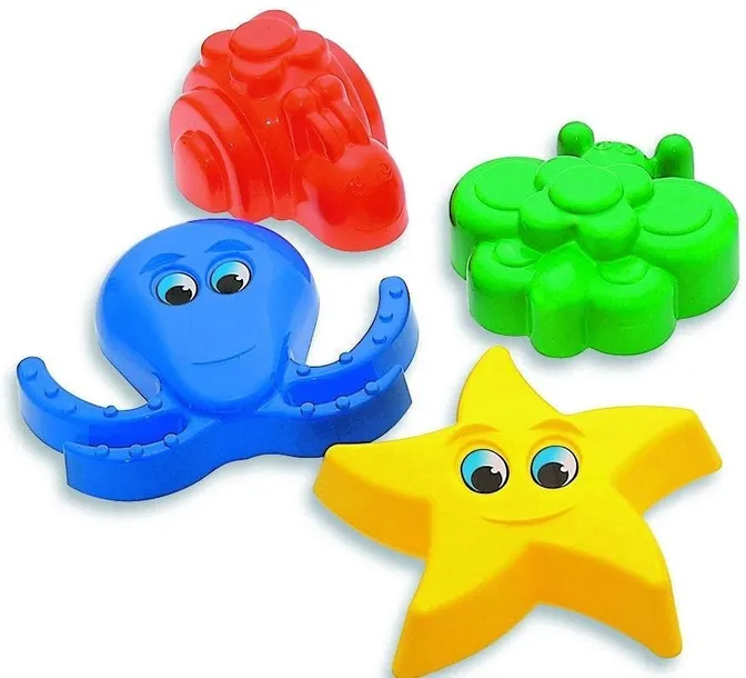 Zabawa w piasku nie mogłaby się obyć bez specjalnych foremek o różnych kształtach! Prezentowany zestaw do piasku składa się z 4 foremek w kształcie gwiazdy, motylka, ślimaka oraz ośmiornicy. Z pewnością przyda się każdemu maluchowi, który uwielbia spędzać czas na zabawach w piaskownicy oraz na plaży. Foremki w kształcie sympatycznych, kolorowych zwierzątek doskonale wpisują się w dziecięce gusta. Ta prosta zabawka przyniesie dziecku mnóstwo radości i okaże się niezastąpiona podczas wielu letnich wyjazdów!