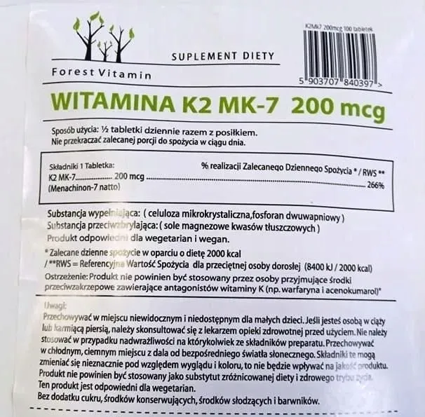 FOREST Vitamin K2 MK7 200mg - 100 tabl