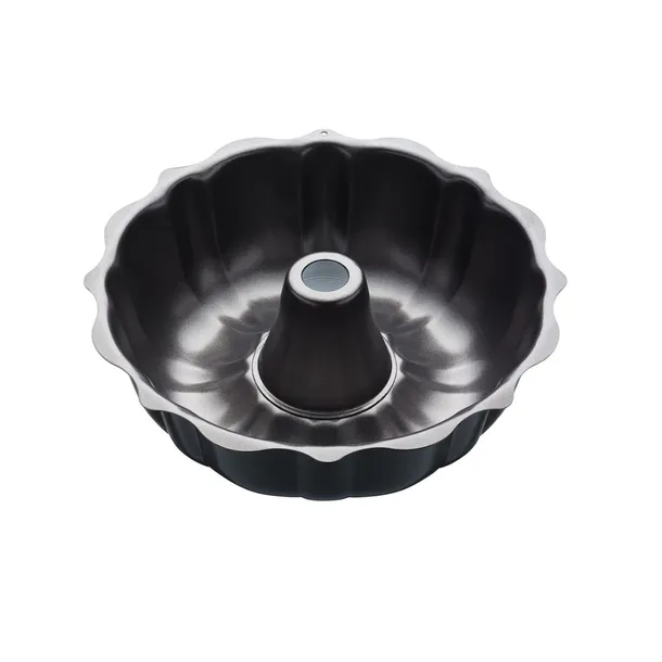 Stalowa forma do babki o średnicy 27 cm i głębokości 8 cm.