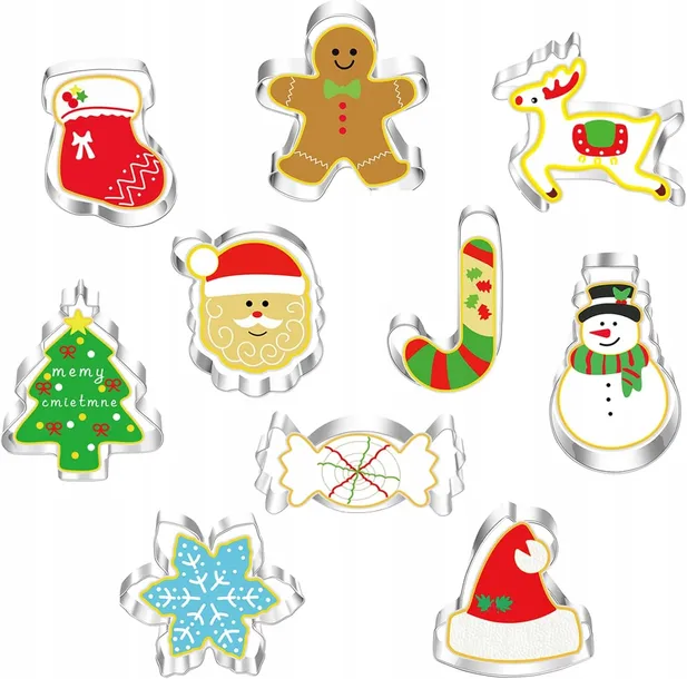 - 10 szt. Foremek do ciastek świątecznych: Święty Mikołaj, Piernik, Płatek Śniegu, Cukierki, Renifer i inne klasyczne świąteczne kształty