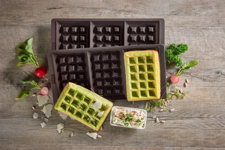 W zestawie 2 foremki - wymiar pojedynczego gofra 13 x 8,5 cm