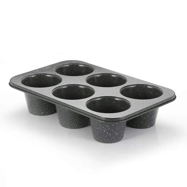 Monfish Jumbo głęboka forma do muffinek - 6 kubków form do muffinek z węglowej stali z powłoką nieprzywierającą - formy do pieczenia z szarym wykończeniem w stylu granitu - duże formy do muffinek do pieczenia (9 diax7.6cm kubek)