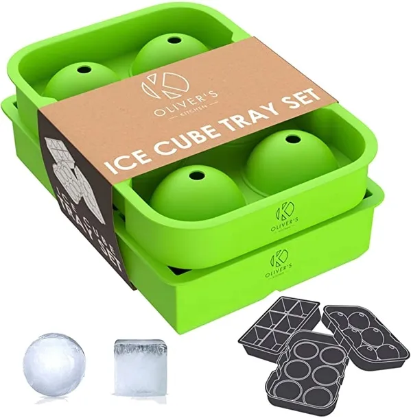 Oliver's Kitchen - 2 x zestaw tacek na kostki lodu - utrzymuj gin, whisky i napoje lód dłużej chłodny - Duże formy do kostek lodu, mniej rozcieńczania - Łatwe do usunięcia kulki i kwadraty - Świeższy lód z pokrywką do układania w stosy