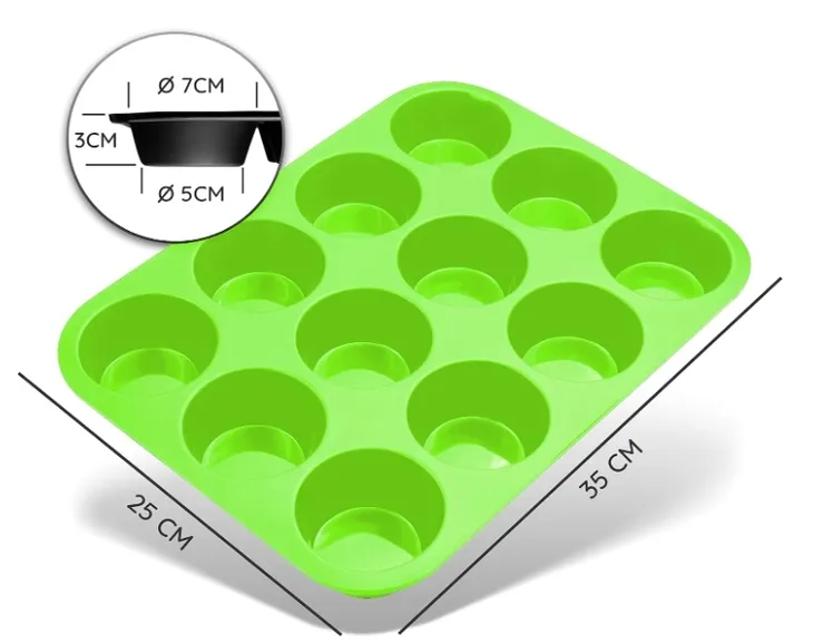SILIKONOWA FORMA DO MUFFINÓW BABECZEK NIEPRZYWIERAJĄCA ZIELONA 12 MIEJSC