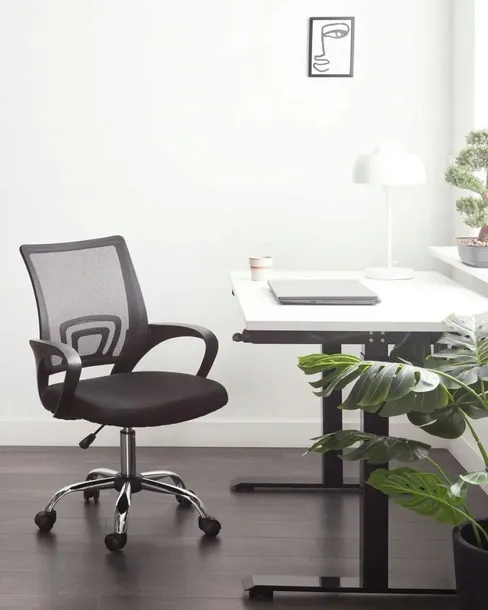 Krzesło biurowe, które sprawdzi się jako wyposażenie domowego home office jak i mebel do pokoju nastolatka. Ergonomiczny kształt oparcia pomaga zachować prawidłową postawę ciała, a przewiewna siatka mesh gwarantuje komfortowe użytkowanie nawet w ciepłe dni. Pod siedziskiem znajduje się dźwignia którą dopasujesz wysokość siedziska jak i odblokujesz lub zablokujesz funkcje odchylenia. Pięcioramienna obrotowa podstawa posiada lekkobieżne kółeczka.