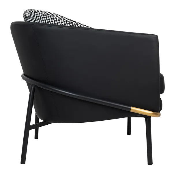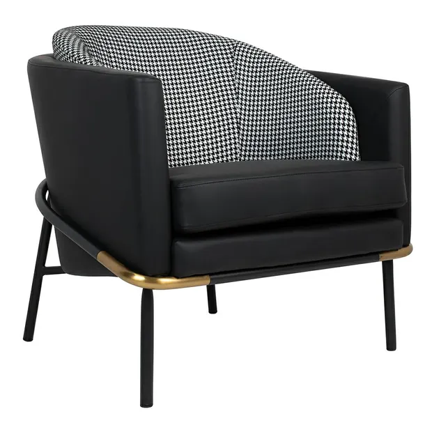 Fotel GUBI to kwintesencja nowoczesnego designu, który łączy w sobie klasyczne materiały z eleganckim wykończeniem. Doskonałe połączenie czarnej ekoskóry i tkaniny pepitka czyni go wyjątkowym dodatkiem do każdego wnętrza.