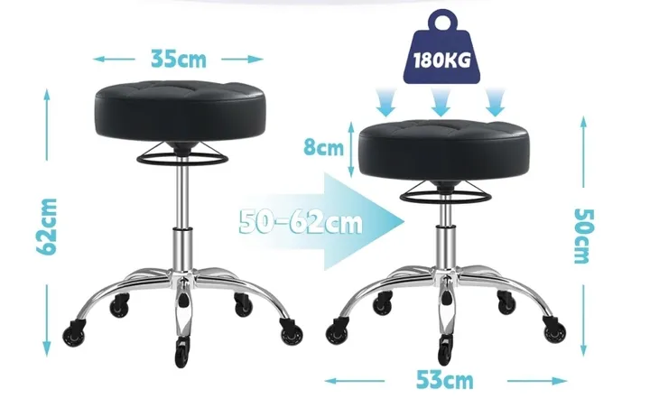 ✅ Regulacja wysokości 50–62 cm + obrót 360°