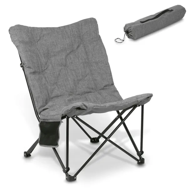 Składane krzesło turystyczne Tadar Relax 83 x 75 x 91 cm ma stalowy stelaż malowany proszkowo. Jest też bardzo solidne i może znieść obciążenie do 120 kg. Weźmiesz je, jadąc pod namiot lub na kemping, a także użyjesz w ogrodzie. Wykorzystasz je też jako składany fotel wędkarski, łowiąc ryby. Co więcej, zadbasz o komfort siedzenia, nawet będąc na plaży. Na dodatek łatwo je przechowasz oraz przetransportujesz. Wykonano je z trwałego materiału OXFORD 600D w kolorze szarym. Wielkość fotela przystosowana jest do różnej budowy ciała użytkownika. Da wygodę nawet dzieciom. Produkt ma miejsce do odłożenia napoju. Zmieści się w nim butelka, a nawet kubek termiczny.