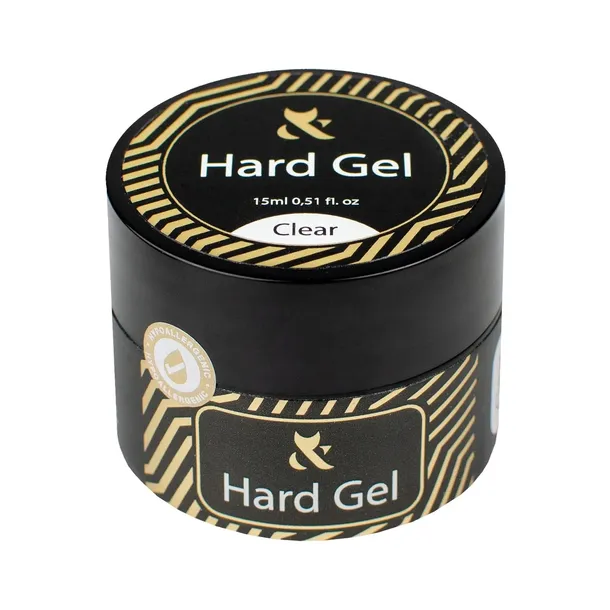 - Hard Gel - żel samopoziomujący o płynnej konsystencji. Nie wymaga piłowania. Może być wykorzystywany jako preparat budujący lub wzmacniający. Bardzo dobrze trzyma się naturalnego paznokcia. Tworzy idealną krzywą C i wyróżnia się wysoką trwałością.