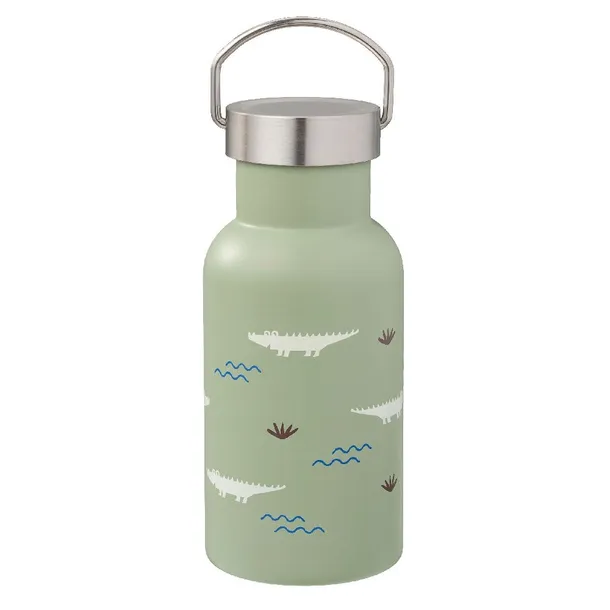 Stylowy i praktyczny termos dla dzieci i dorosłych o pojemności 350ml. Utrzymuje temperaturę napojów do 12 h. Wykonany jest ze stali nierdzewnej o podwójnych ściankach. Posiada 2 wymienne pokrywki: jedną ze stali nierdzewnej i drugą sportową z wygodnym uchwytem, który można przymocować do torby lub plecaka. W zestawie z małą szczoteczką do czyszczenia. Termos sprawdzi się idealnie na wakacjach, na spacerze, czy w dłuższej podróży samochodem. To także niezbędnik w wyprawce do szkoły.Specyfikacja:Skład: stal nierdzewna, plastikWymiary: 20 x 7,5 x 7,5 cmPojemność: 350ml
