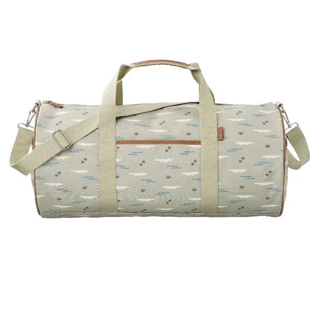 Świetna na weekend, wypady poza miasto czy zajęcia sportowe. Super cool torba Fresk posiada dużą komorę i wewnętrzną kieszonkę, żeby wygodnie spakować rzeczy malucha. Zewnętrzna kieszonka, zamykana na suwak, idealna do schowania kluczy, czy chusteczek. Torba posiada wygodne uchwyty do niesienia w dłoni oraz pasek na ramię.Wykonana z przetworzonych butelek PET oraz wysokiej jakości skóry ekologicznej.Wysokość: 54 cm, średnica: 25 cm.