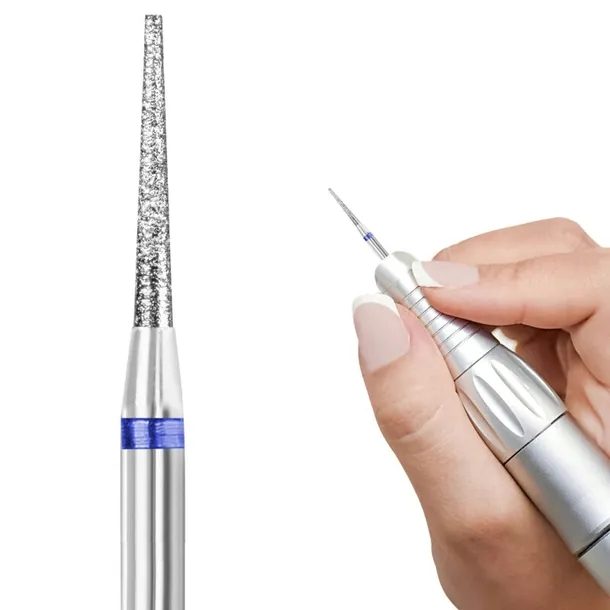 Frez stożek diamentowy niezwykle precyzyjnie usuwa wszystkie błonki i zadziorki w celu perfekcyjnego przygotowania do manicure bez efektu odrostu. Wykonany jest z wytrzymałej stali nierdzewnej, wykończonej nasypem diamentowym, który nie ściera się za szybko. Praca frezem diamentowym wymaga wykończenia – konieczność wygładzenia płytki paznokciowej polerką. Frez wyłącznie do użytku profesjonalnego. Pasuje do wszystkich frezarek. Frez umieszczony jest w indywidualnym, bezpiecznym opakowaniu, zapobiegającym przemieszczaniu się frezu.