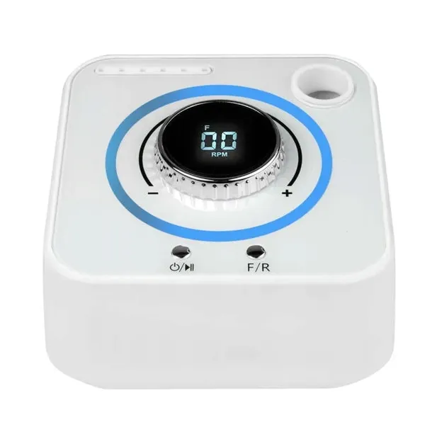 Płynna i pełna regulacja w zakresie od 0 do 40000 obr./min – odbywa się z poziomu bazy i zapewnia pełen komfort pracy. Głowica typu twist - lock umożliwia wymianę frezów jednym ruchem, bez konieczności stosowania niewygodnych kluczyków czy trzpieni zatem idealnie nadaje się dla filigranowych kobiet, ponieważ nie ma potrzeby użycia siły!