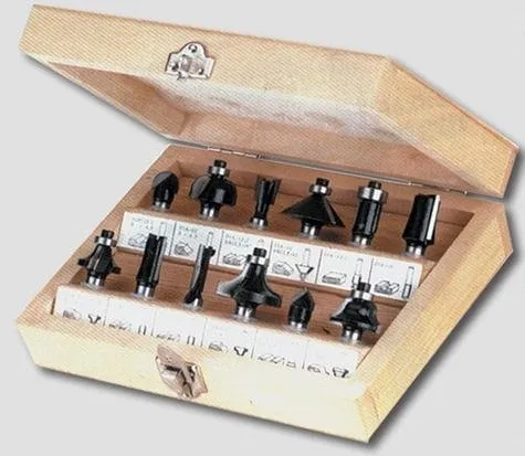 12 szt. frezów kształtowych do drewna, z węglikiem. Frezy posiadają chwyt 8mm. Ostrza są wykonane z węglików spiekanych. Są to frezy przeznaczone do obróbki twardego i miękkiego drewna, sklejek, płyt wiórowych itp.