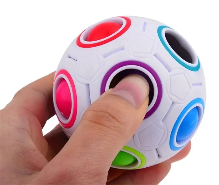 Piłeczka antystresowa Magic Ball. Doskonała zabawka logiczna dla dzieci i dorosłych, polegająca na wciskaniu kolorowych kulek i przestawianiu ich w inne otwory. Świetnie sprawdza się jako walka z codziennym stresem oraz pomaga poradzić sobie ze zdenerwowaniem. Przyczynia się do poprawy funkcji motorycznych oraz rozwoju spostrzegawczości u dzieci. Trenuje cierpliwość na podobnej zasadzie do antystresowych gniotków.