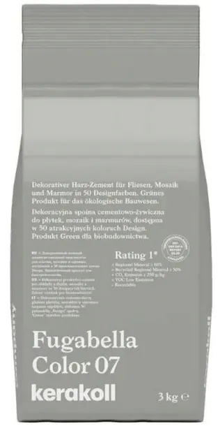Fugabella® Color jest rewolucyjną,hybrydową spoiną dekoracyjną do wszelkich powierzchni z gresu, mozaik i kamieni naturalnych. Fugabella® Color charakteryzuje się hydrofobowością, niezwykle niską chłonnością wody, wysoką twardością powierzchni, podwyższoną odpornością na najczęście spotykane substancje kwasowe i całkowitą jednorodnością koloru.