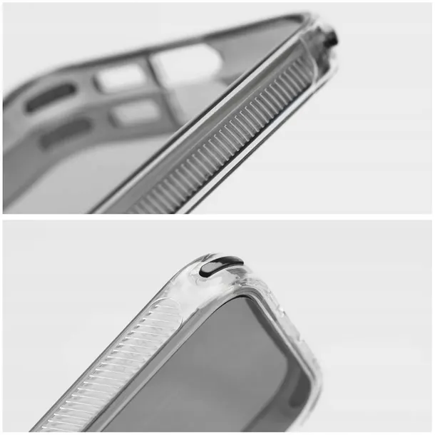 Przezroczyste plecki z PU, obejmujące również krawędzie, oraz miękkie, kolorowe wypełnienie z TPU gwarantują ochronę telefonu oraz ograniczają powstawanie rys. Ponadto wzmocnienie boków i rogów, a do tego podwyższony rant wokół wyspy aparatów stanowi dodatkowe zabezpieczenie przed uszkodzeniami. Co ważne, struktura produktu zapobiega wewnętrznemu osadzaniu się pary wodnej.