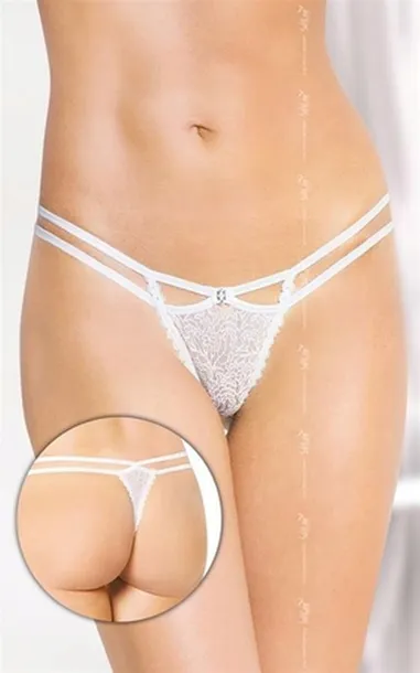 Finezyjne paseczki, subtelna cyrkoniowa ozdoba oraz wycięcia na pupie dodają bieliźnie kokieteryjnego i zmysłowego charakteru. Idealne na wyjątkowe okazje lub kiedy chcesz dodać odrobinę pikanterii do codzienności.