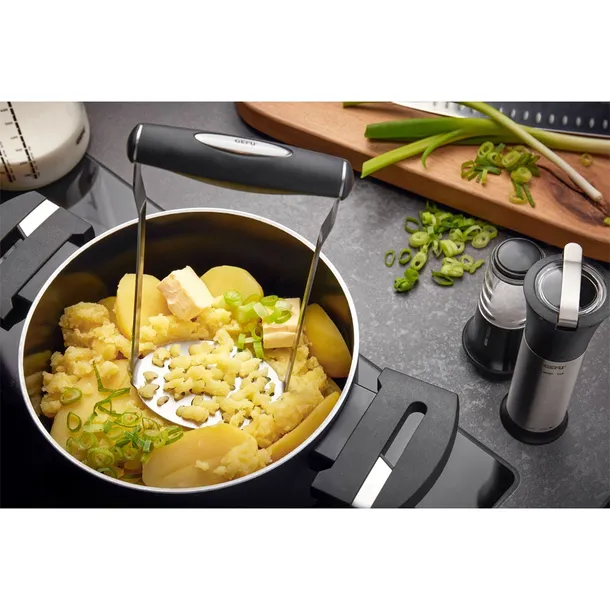 Poręczny, praktyczny, solidny. Tłuczek do ziemniaków TIMBRA z łatwością przekształci ugotowane ziemniaki i warzywa w doskonałe, cudownie kremowe purée. Dzięki wykonaniu ze stali nierdzewnej będzie przez długie lata pomagał Ci w kuchni, a jego ergonomiczny uchwyt gwarantuje łatwość w obsłudze. Po użyciu możesz go bez problemu umyć w zmywarce.