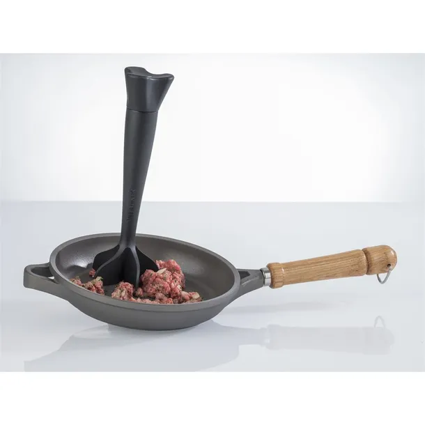 Niezastąpiony, wielofunkcyjny, poręczny i trwały. Już nie musisz się męczyć, by na patelni rozdrobnić mięso mielone. Z pomocą przychodzi siekacz WHACKER. Dzięki niemu, bez żadnego wysiłku posiekasz równomiernie mięso, nawet to częściowo jeszcze zamrożone. Pomoże Ci on także w przygotowaniu awokado na guacamole, rozbijaniu ugotowanych ziemniaków czy kruszeniu tofu i fety. Siekacz jest odporny na wysokie temperatury (aż do 210°C).