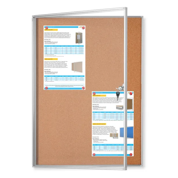 Gablota ogłoszeniowa GMR przeznaczona do użytku wewnętrznego. Gablota wykonana z profil aluminiowych w kolorze srebrnym z narożnikami z tworzywa. W drzwiach zastosowano bezpieczne szkło akrylowe. Drzwi uchylne zamykane na jeden zamek. Gablota dostępna z podłożem magnetycznym i korkowym do wpinania. Gabloty GMR znajdą zastosowanie praktycznie w każdym obiekcie czy to biurowym, oświatowym, domu, biurze itp.