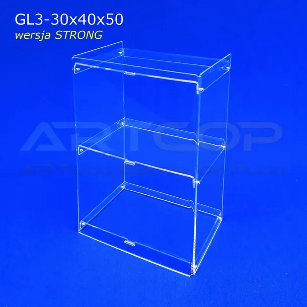 Gablota z plexi wolnostojąca, Regał na ladę, Witryna o wym. 30cm x 40cm x 50cm z 2 półkami wewnętrznymi.