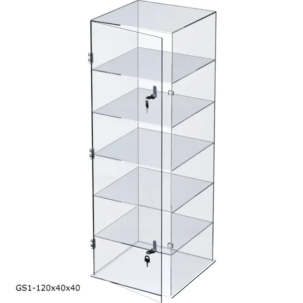 Gablota z plexi wolnostojąca o wym. 120cm x 40cm x 40cm z 5 półkami wewnętrznymi.
