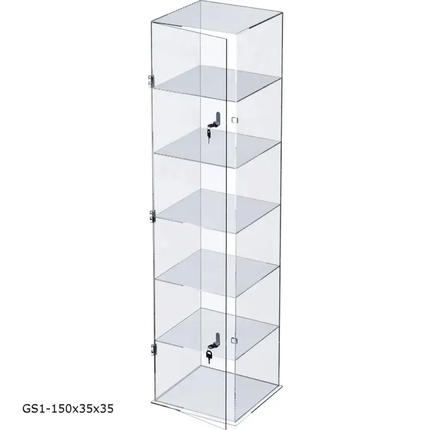 Gablota z plexi wolnostojąca o wym. 150cm x 35cm x 35cm z 7 półkami wewnętrznymi.