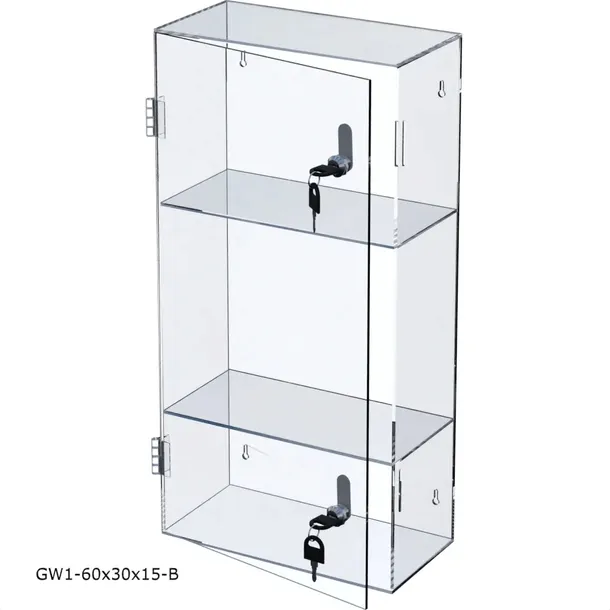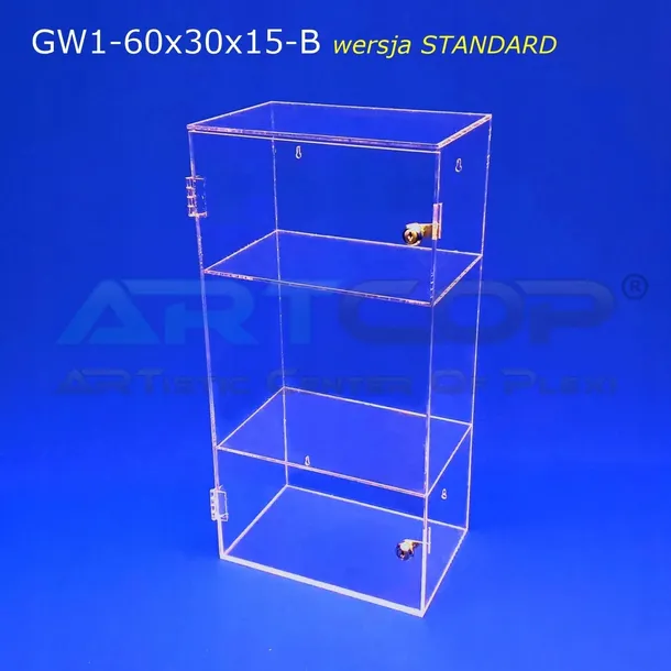 Szafka z plexi 4mm, Gablota wisząca o wym. 60cm x 30cm x 15cm - wersja B.