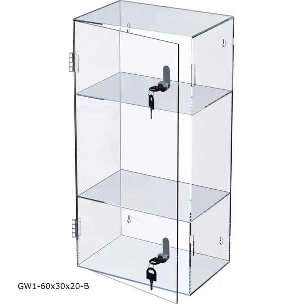 Szafka z plexi 4mm, Gablota wisząca o wym. 60cm x 30cm x 20cm - wersja B.