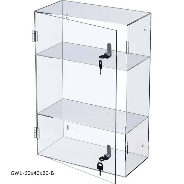 Szafka z plexi 4mm, Gablota wisząca o wym. 60cm x 40cm x 20cm - wersja B.