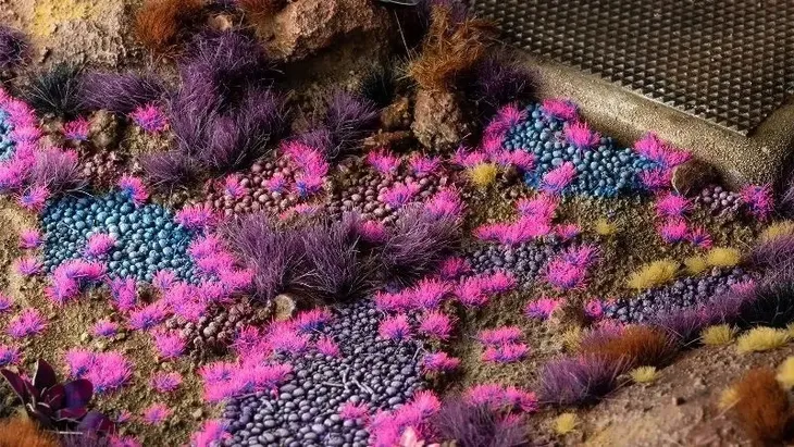 Bardzo małe i niskie kępki w niebiekim i różowym kolorze. Najlepiej nadają się do odtwarzania obcych i magicznych krajobrazów.