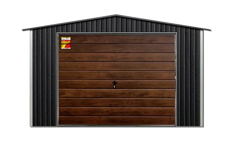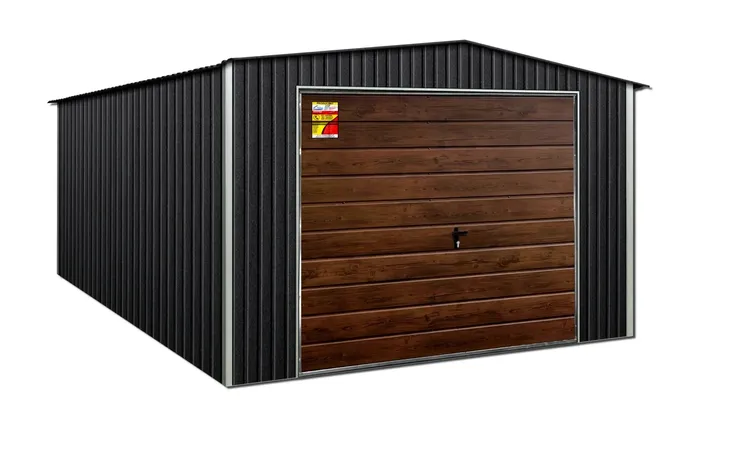 Garaż blaszany 5x5 grafit LUX drewnopodobna brama uchylna blaszak na wymiar