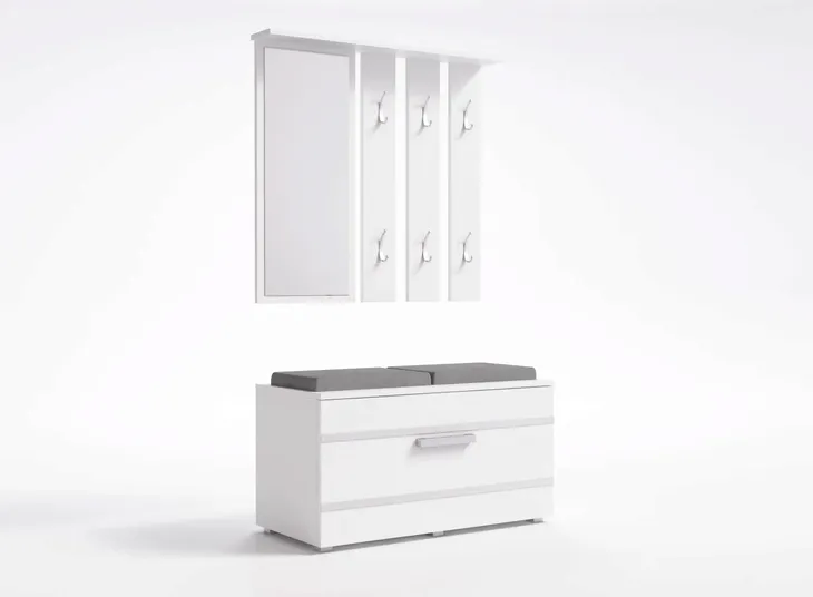 PRAKTYCZNY ZESTAW DO PRZEDPOKOJU WIESZAK Z LUSTREM + SZAFKA NA OBUWIE + SIEDZISKO